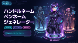 個人事業主・フリーランス・副業向けの屋号を無料で自動生成できるジェネレーターです。
